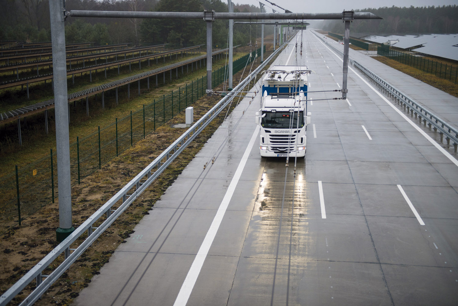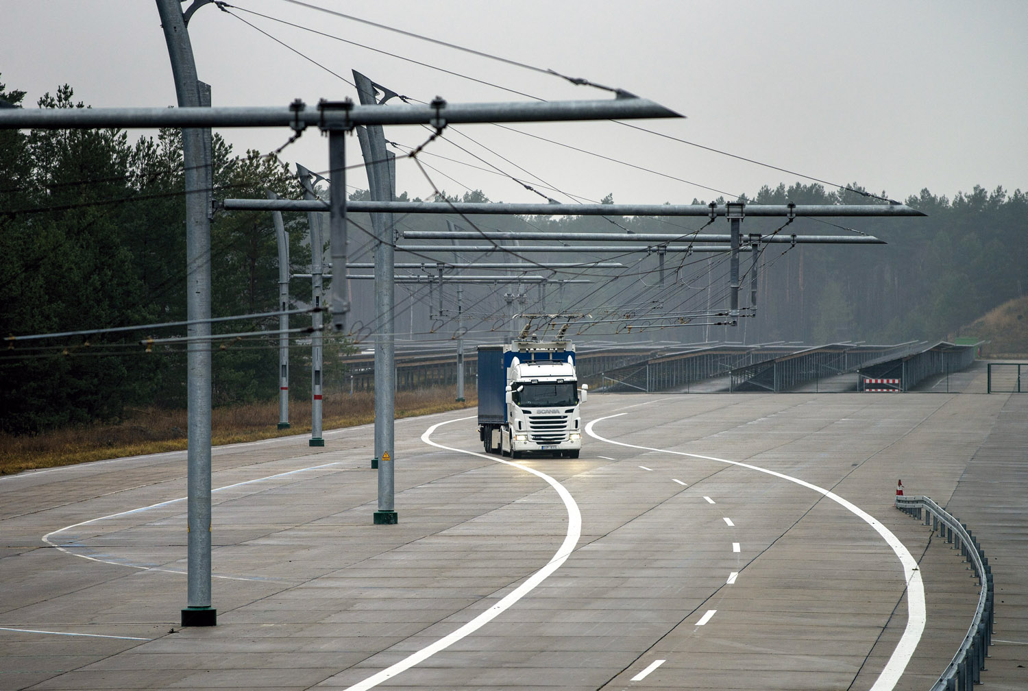 Las pruebas con el sistema de electrificación de potencia en su conjunto se llevan a cabo en la pista de pruebas de dos kilómetros de largo que posee Siemens en Dölln, a las afueras de Berlín. “Los sistemas con líneas aéreas son especialmente adecuados en las rutas regulares de transporte de punto a punto, por ejemplo entre los molinos y puertos de acero y entre las minas y plantas de procesamiento”, dijo Christer Thorén del Departamento de Desarrollo de Sistemas de Scania.