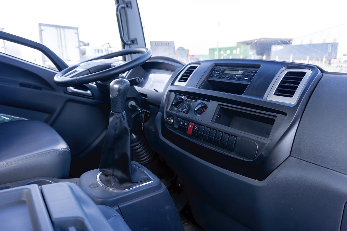 Una volcadora traída a medida. Equipo compacto y con buena capacidad de carga. Con motor Cummins 3.8-154 HP. Cabina abatible, amplia y confortable para el chofer. Cuenta con aire acondicionado, bloqueo central y vidrios eléctricos. Volcadora doble pistón con capacidad de 8.000 Kg o 4.3 M3.
