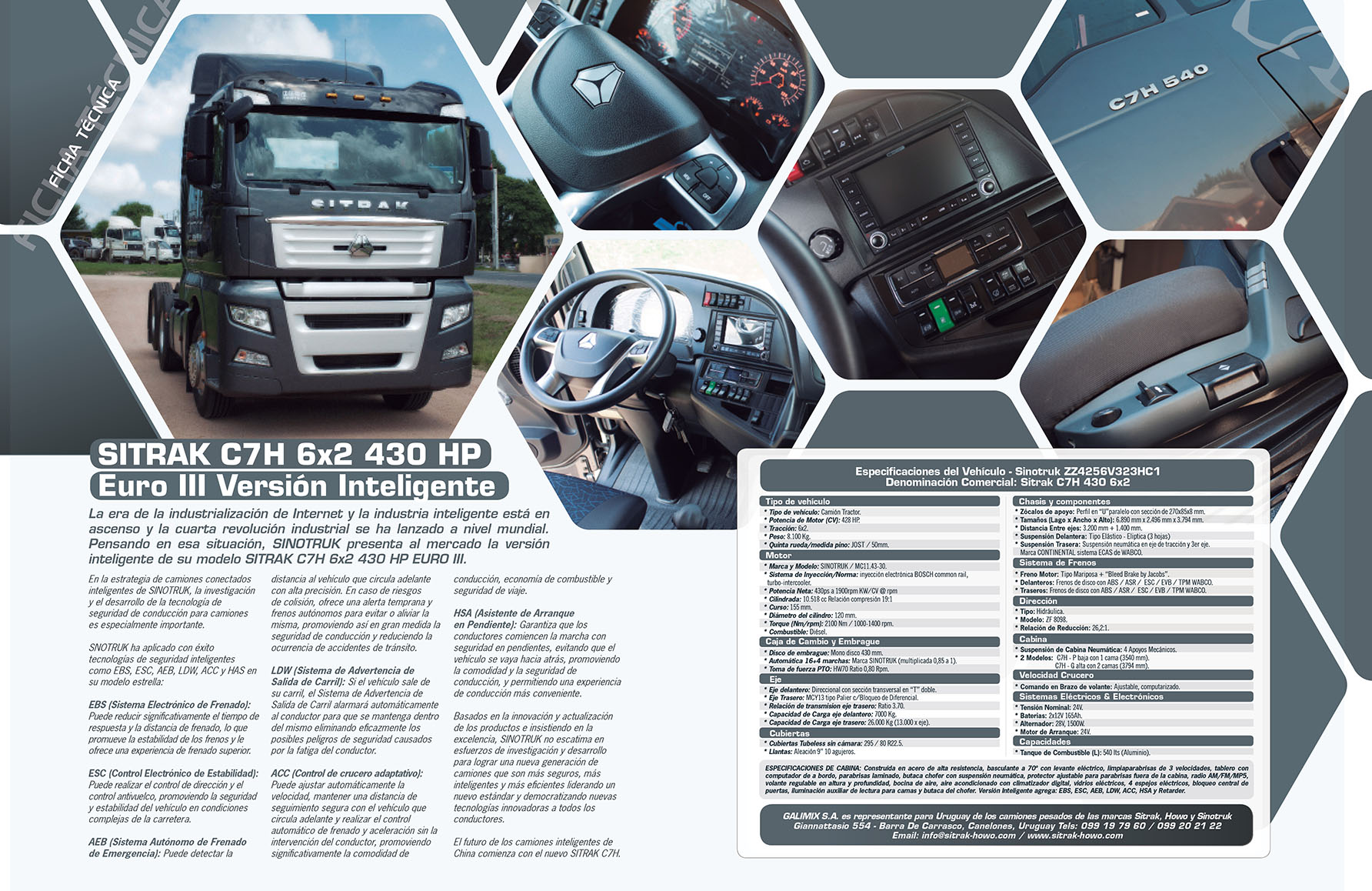 FICHA TÉCNICA: SITRAK C7H 6x2 430HP Euro III Versión Inteligente
